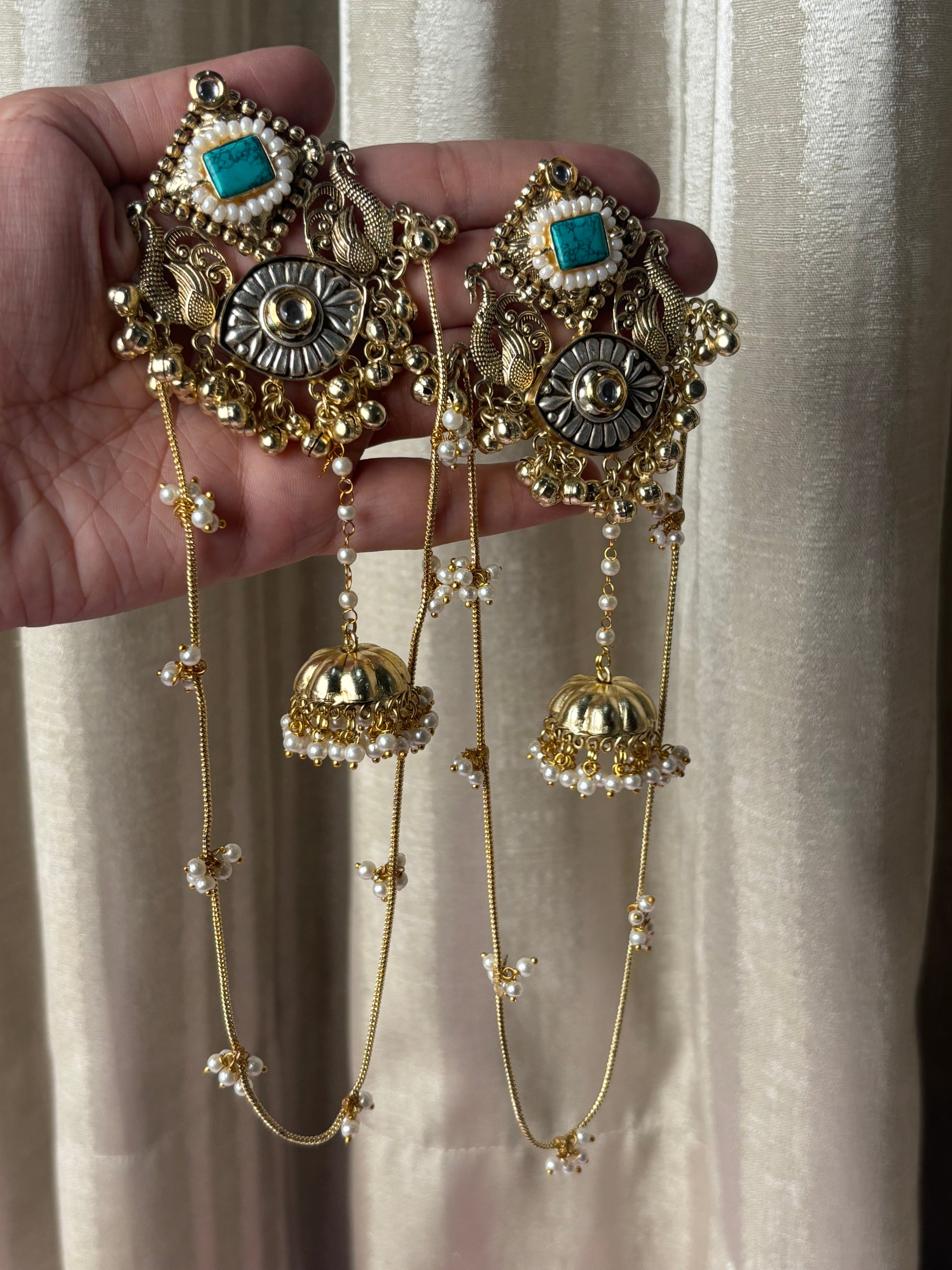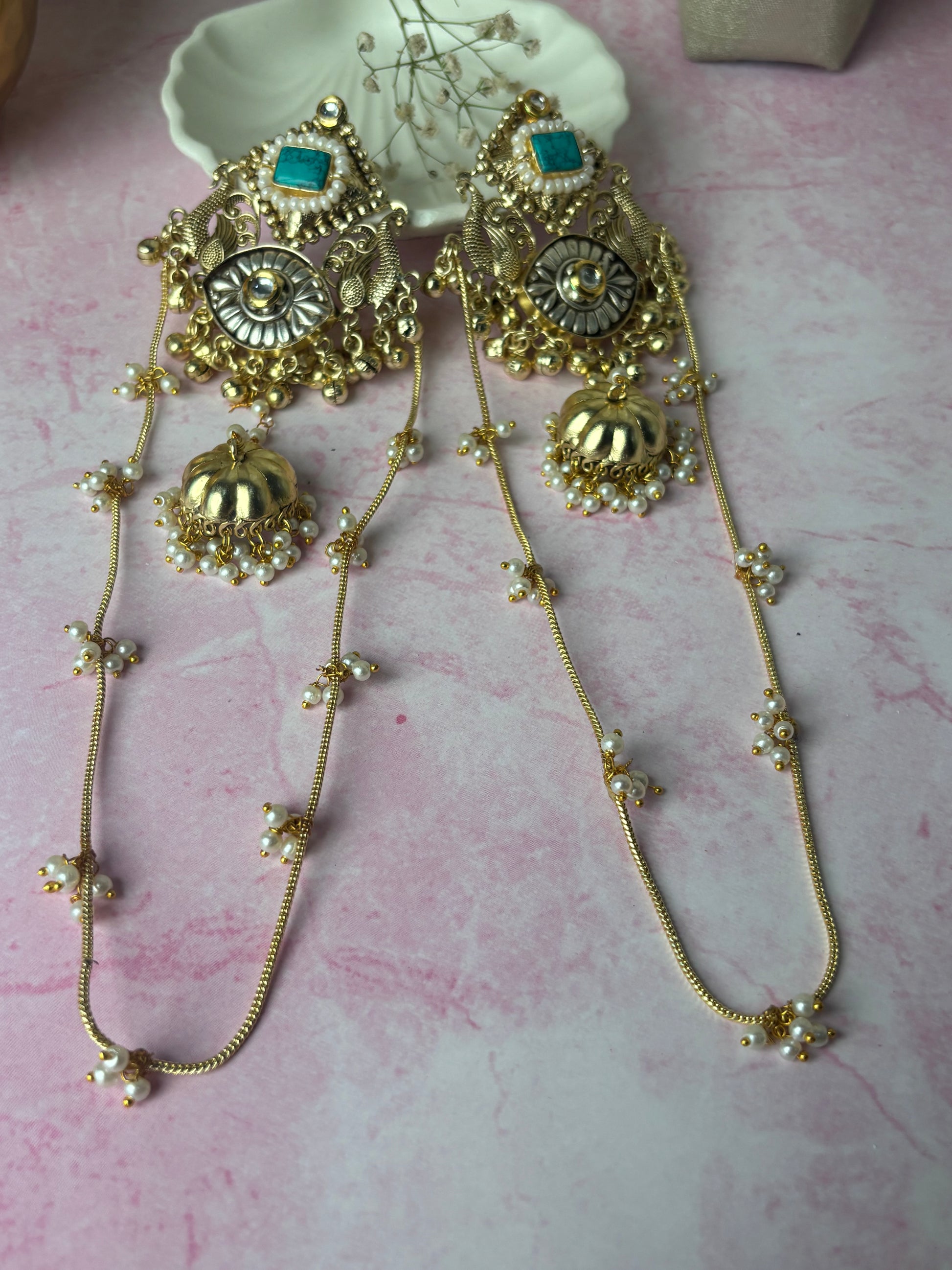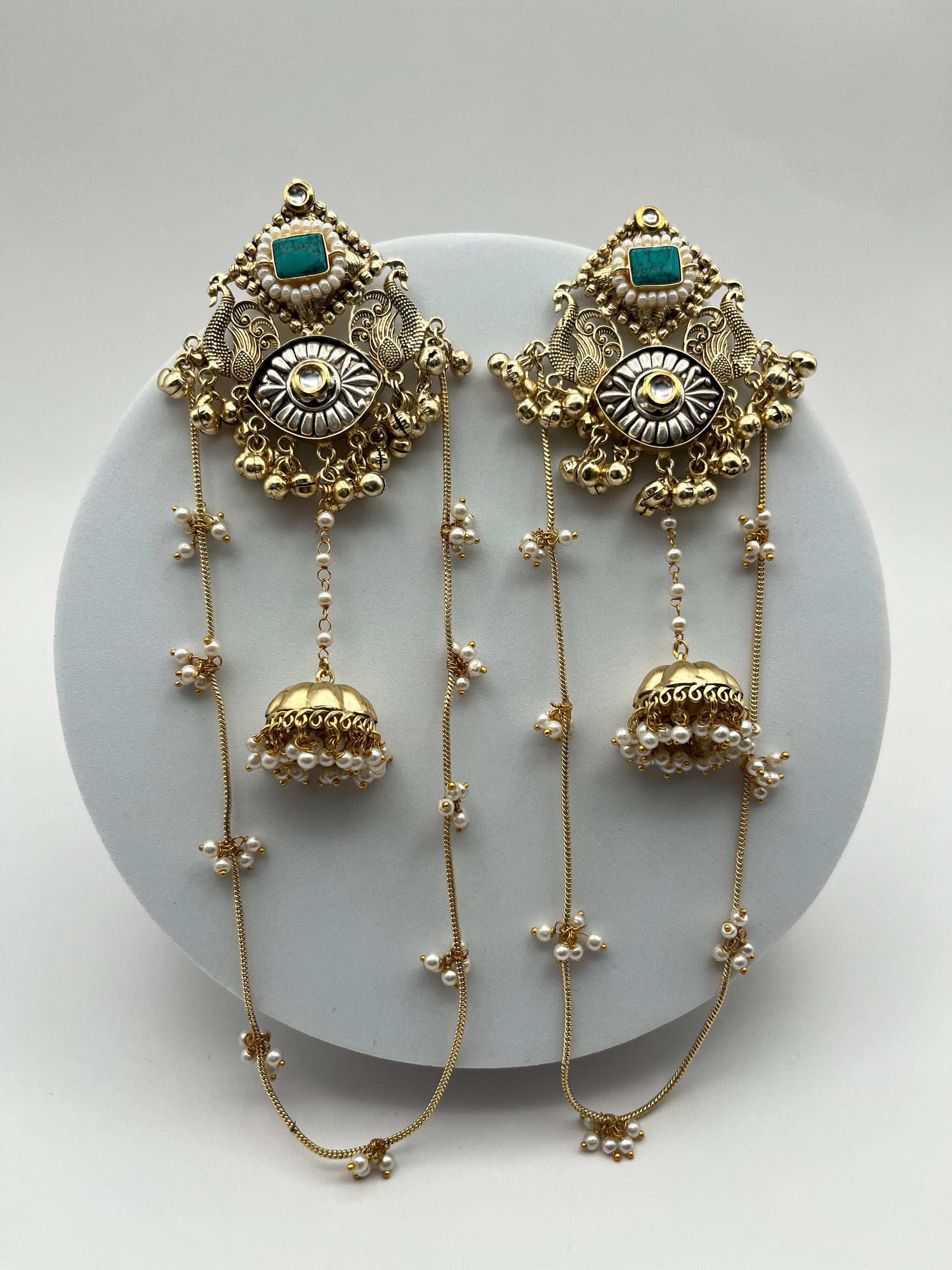 Vaidehi Golden with Blue Stone Kashmiri Earrings