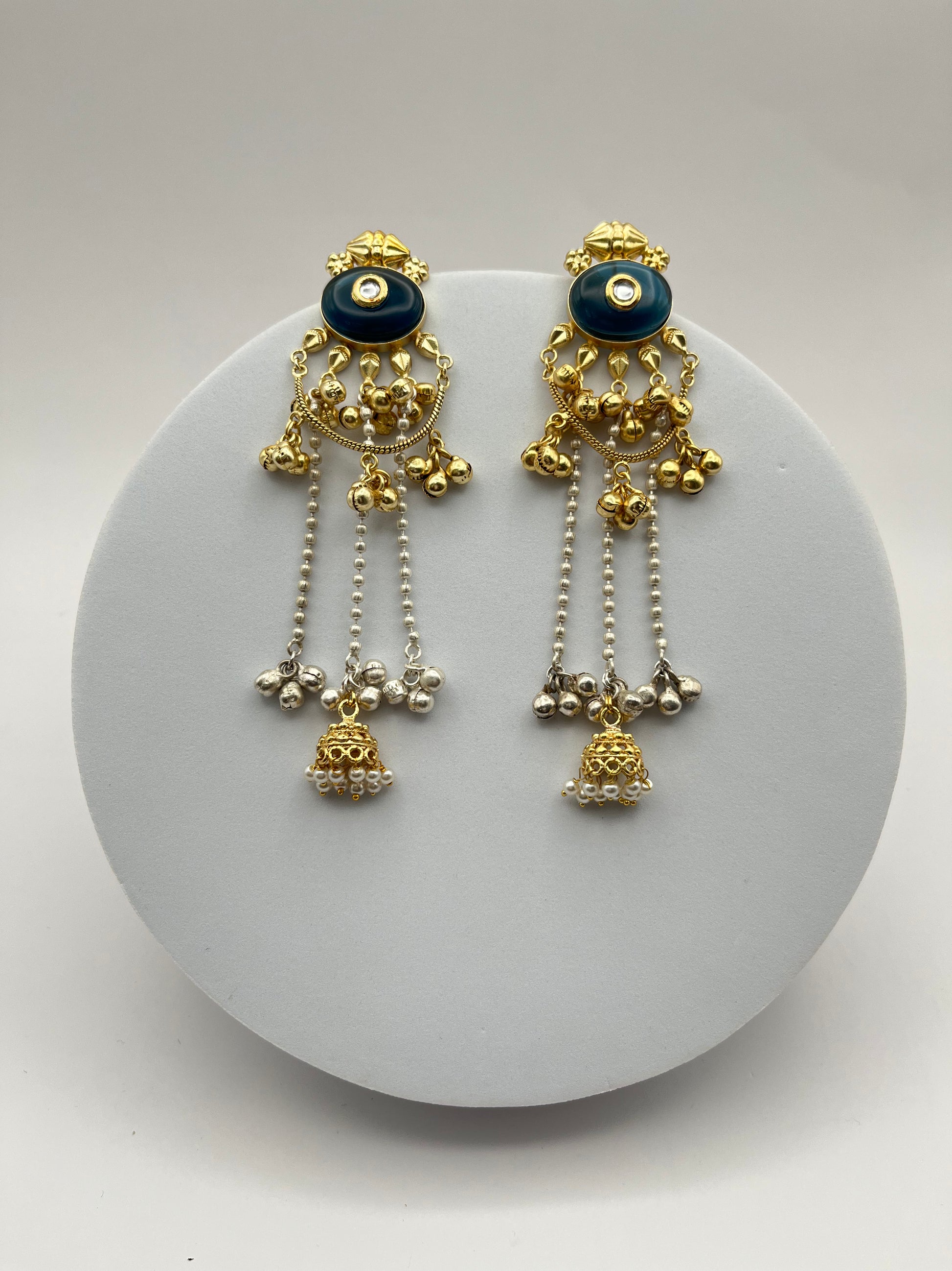 Sarika Golden with Dark Blue Stone Kashmiri Earrings