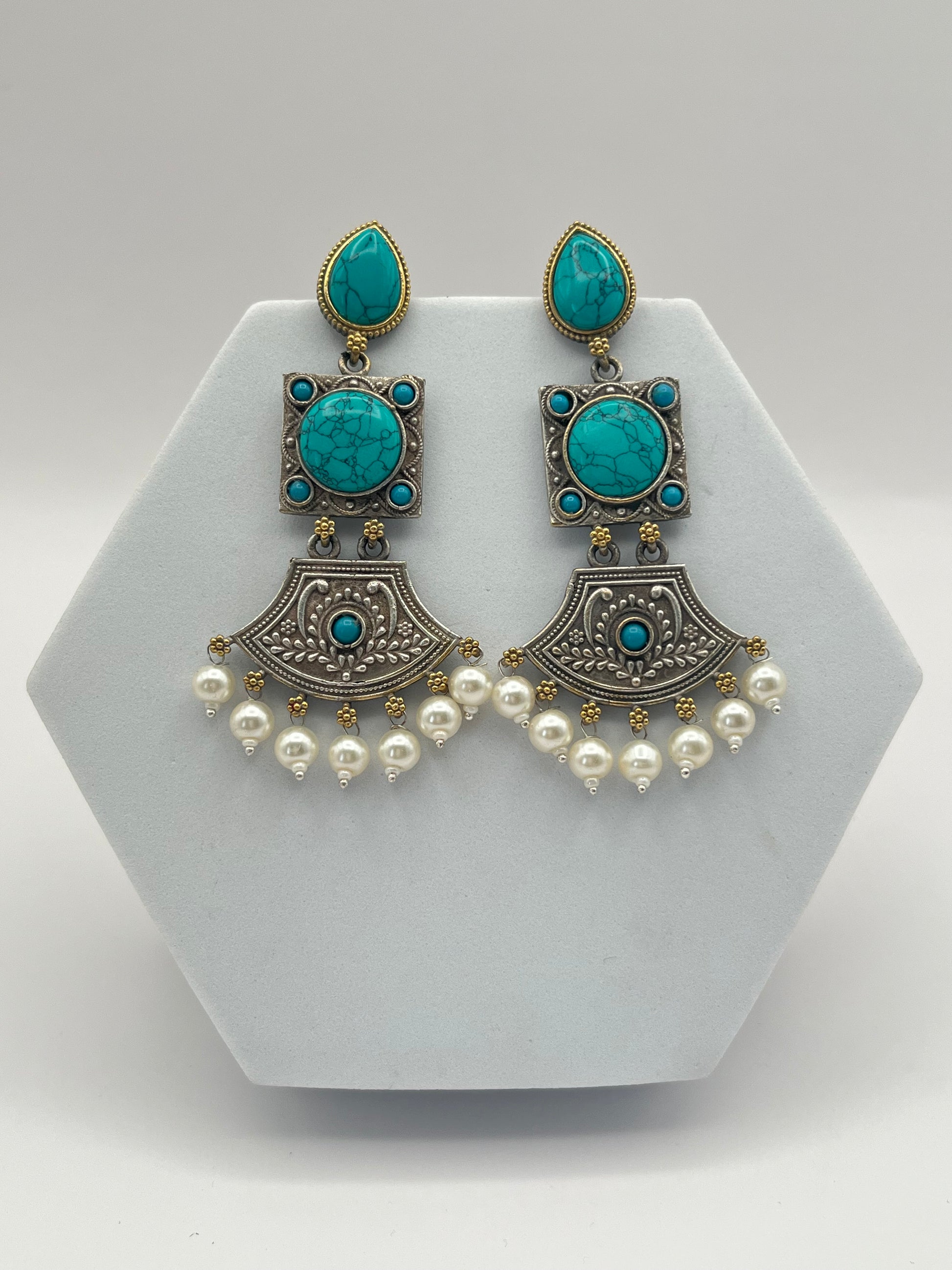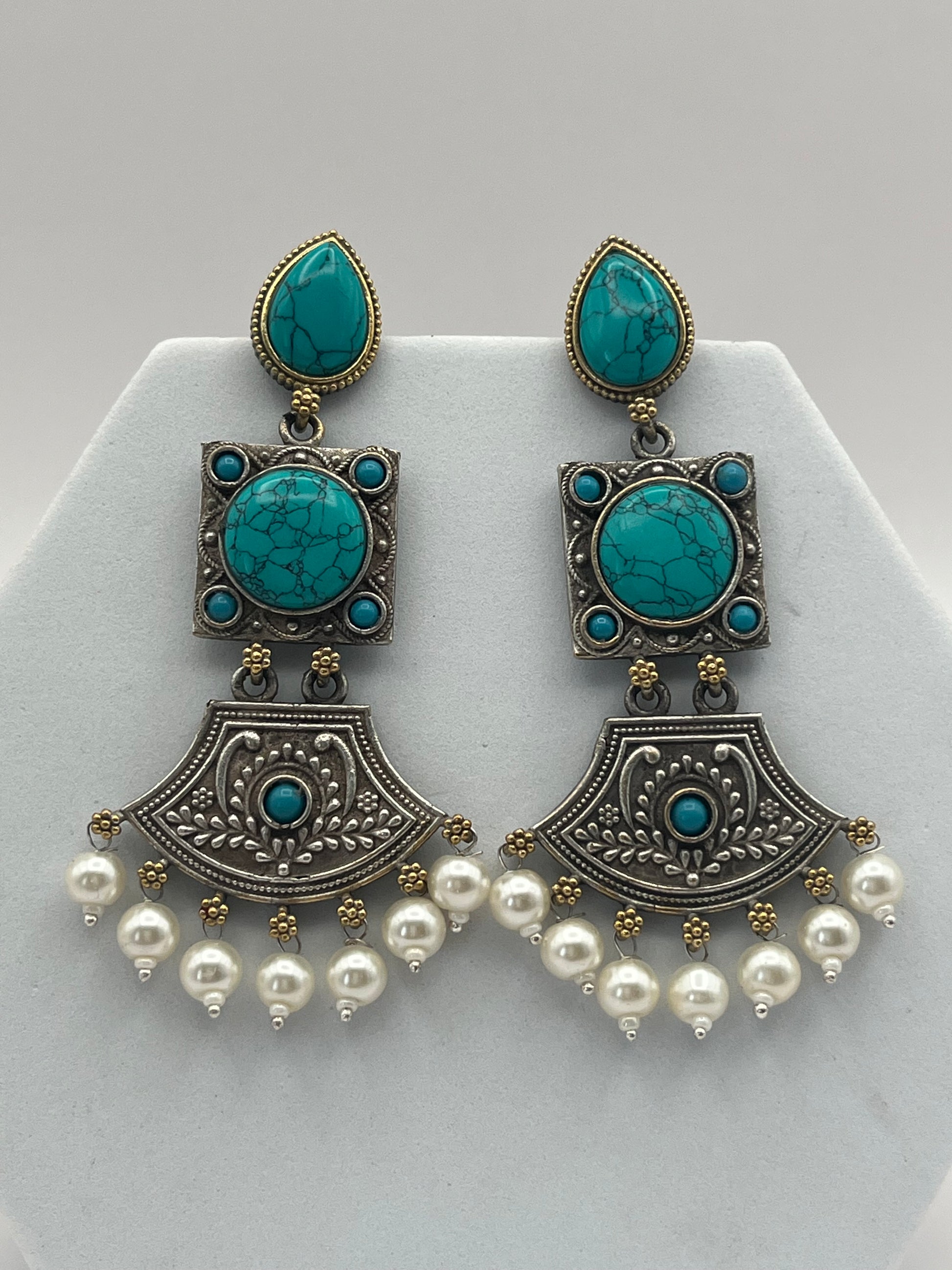 Shivani Turquoise Blue Dual Tone Long Earrings