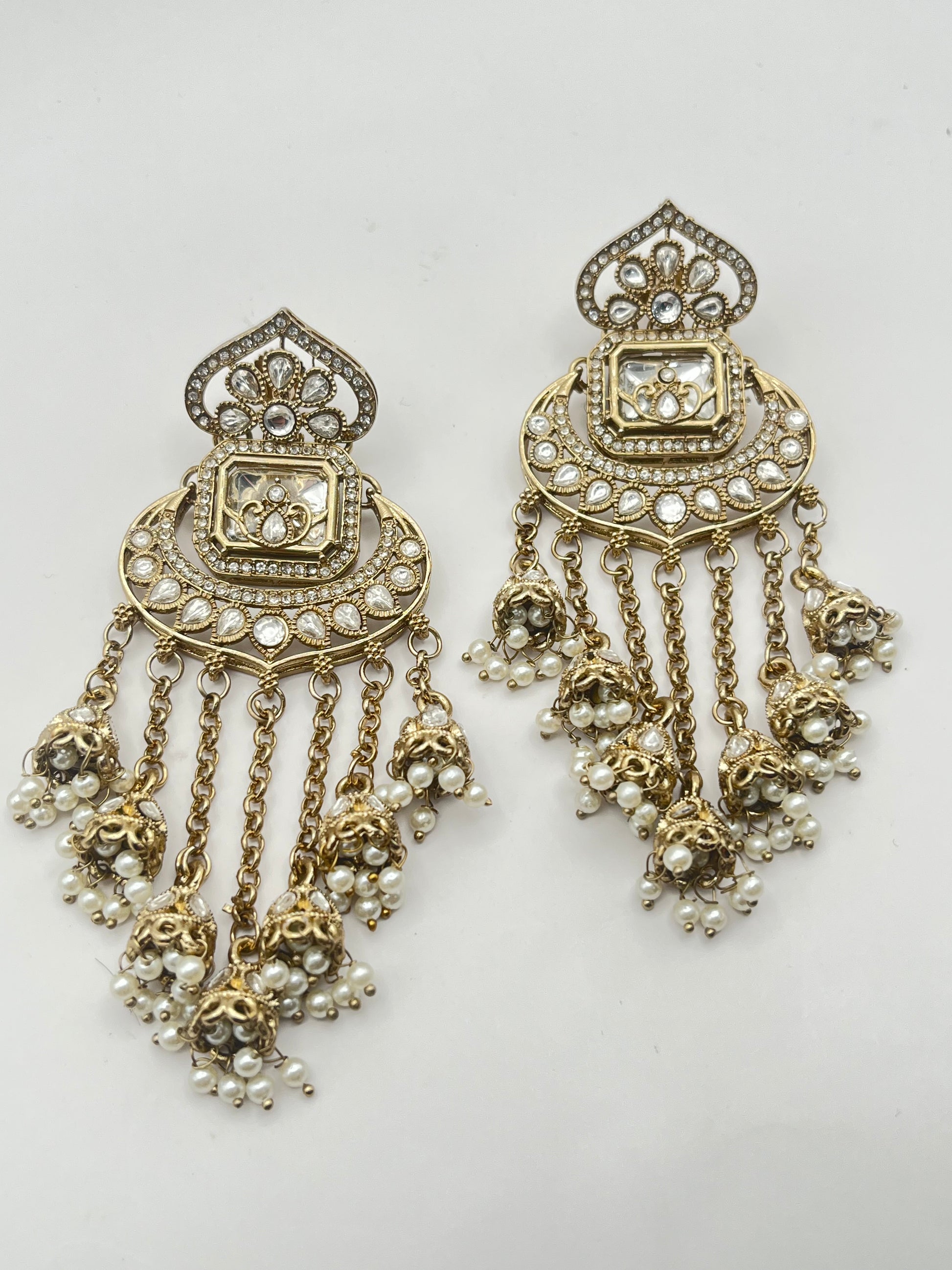 Vaishali Minar Shape White Kundan with line dangling Earring
